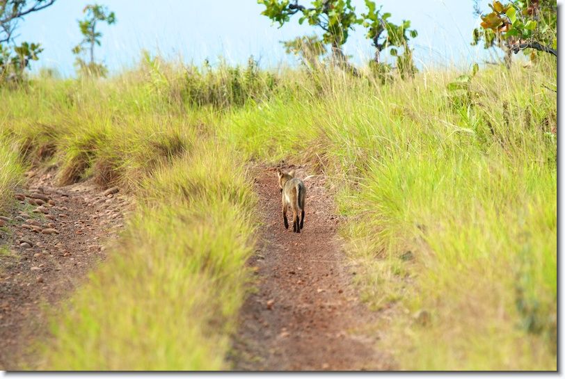 A second drive into the savannah in the late afternoon finds this Crab-eating Fox sharing the road with us.